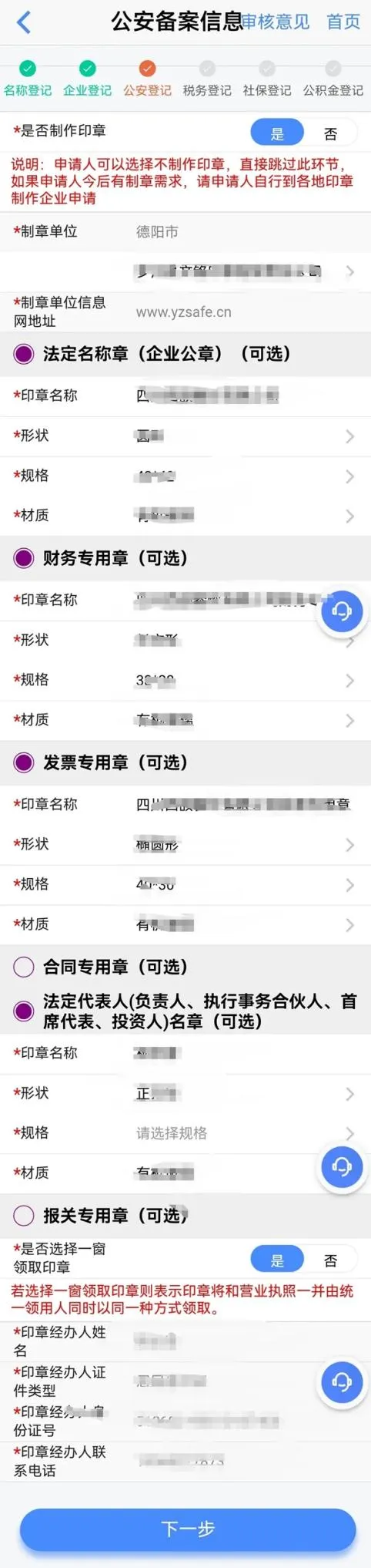 11.填报公安备案信息。选择印章制作,填写相关信息。