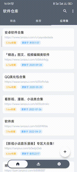 软仓还提供各种软件推荐页,你可以在软件内找到大量的破解类资源,包括娱乐类、工具类和游戏类软件等。还有一个应用集页面,根据类型精心整理了各种软件集合,同时还支持用户分享自己的软件。