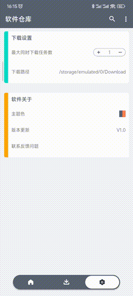 找到软件后,点击下载即可。软仓支持在应用内下载,也支持跳转浏览器进行下载。在设置页面,您还可以设置同时下载任务的数量,还可以调整主题颜色。