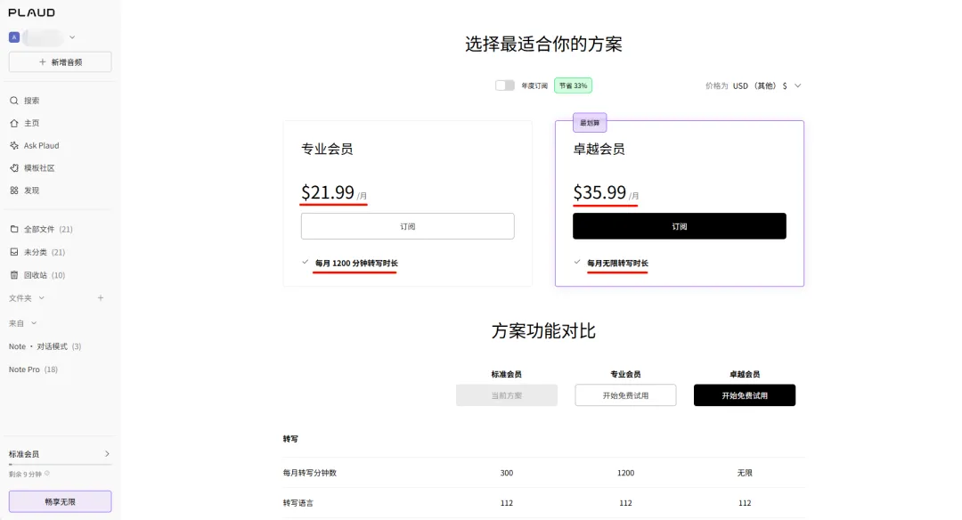 订阅费用:硬件买了,还得买服务。150多一个月还只有1200分钟的额度。 -