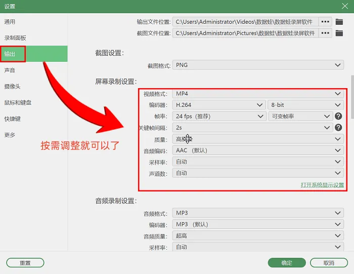 3. 录制参数可自主调节:允许用户提前调整视频导出的大小、格式、帧率与分辨率等,可导出4k超高清视频,确保录制质量。