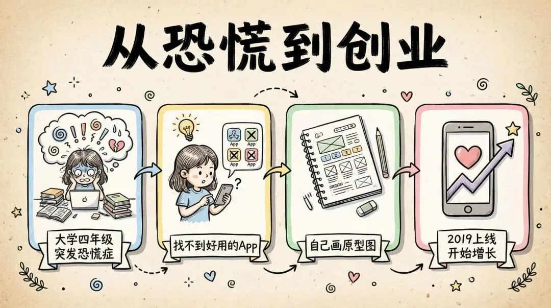 第一步:下载所有竞品 App,重点看用户评论。她发现一个共同的 gap——用户不知道什么是恐慌症,也不知道发作时该怎么办。