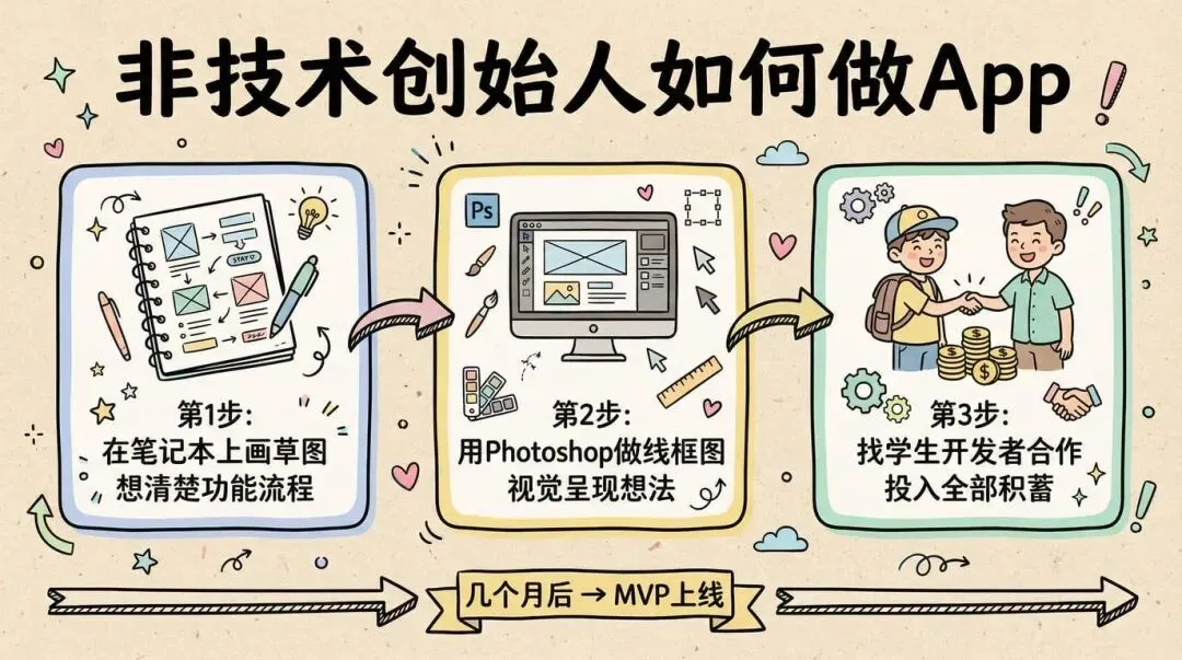 不会技术不是借口。画草图、做设计、找合作伙伴,总有办法把想法实现。