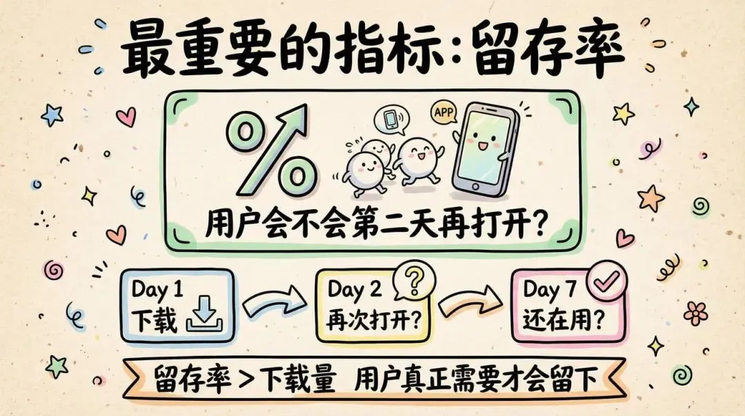 留存率>下载量。做用户真正需要的东西,而不是刷虚荣指标。