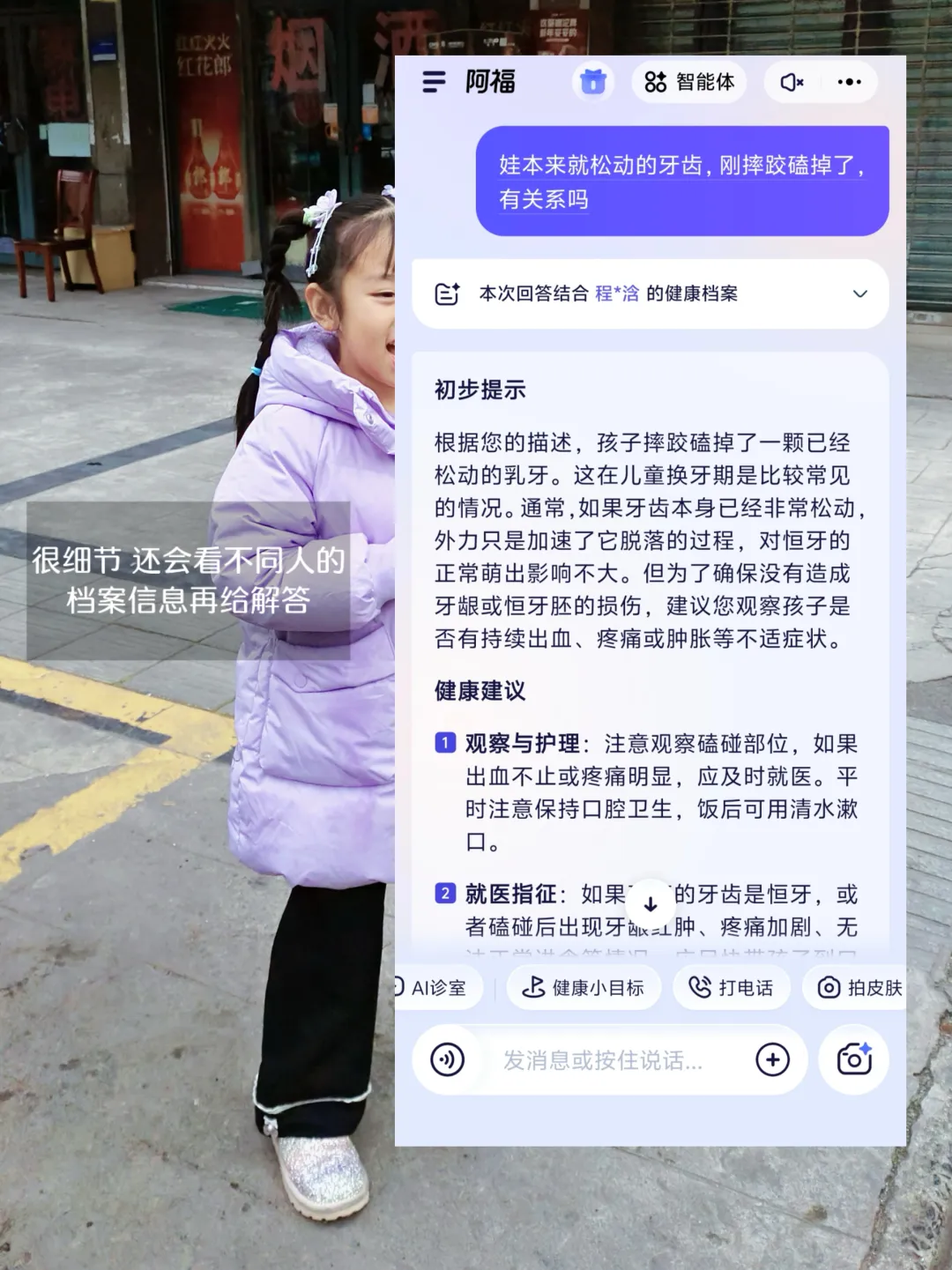 现在已经进入了AI时代,像阿福这种靠几百家医院训练出来的AI大模型,实用性很高。