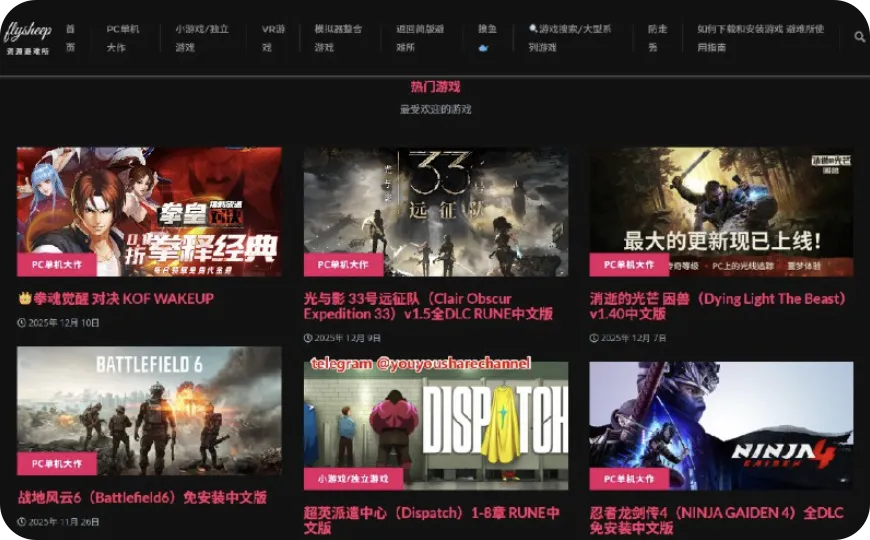 今天给大家推荐一个游戏下载网站:flysheep资源避难所