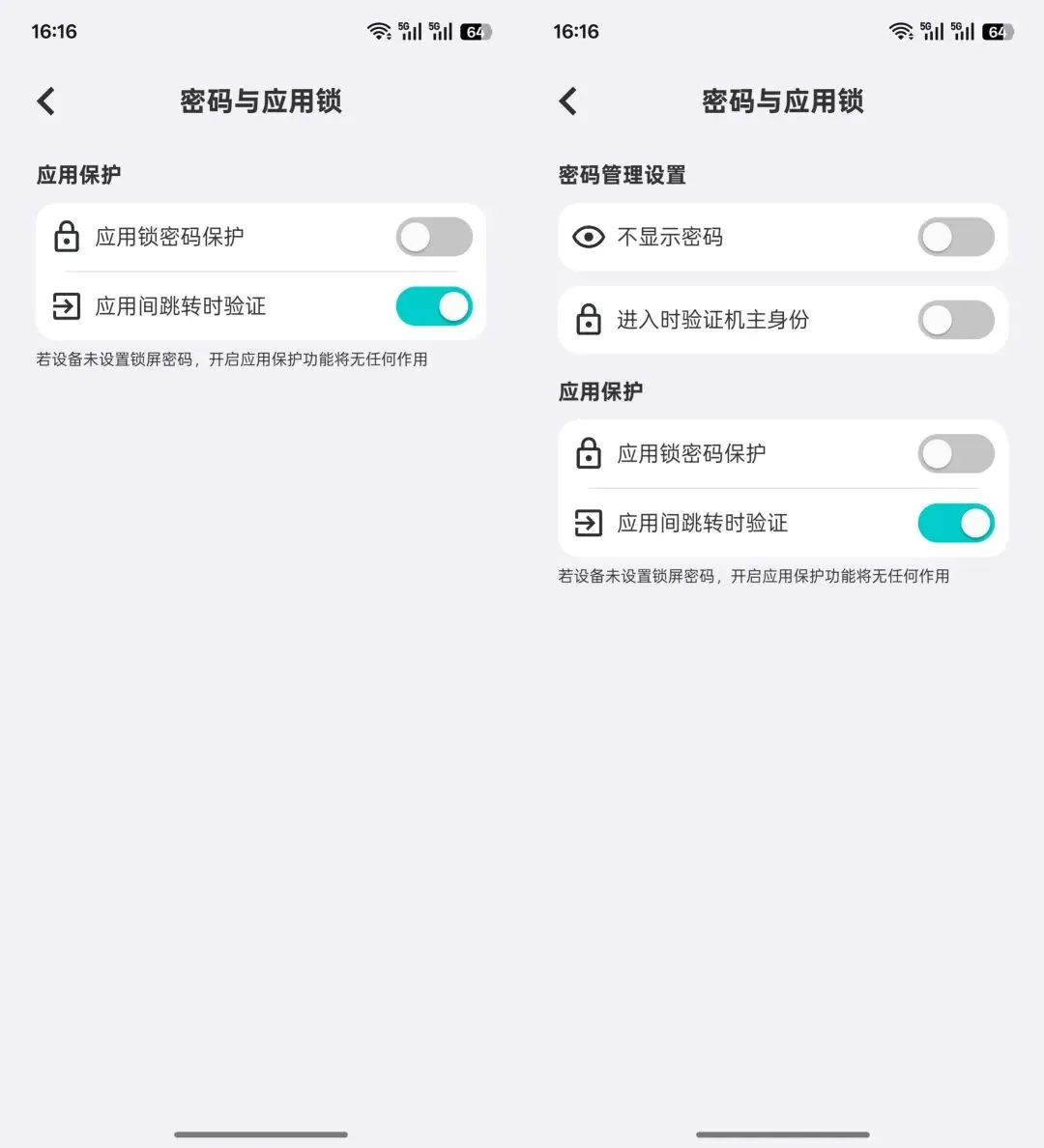 – 密码与应用锁新增控制密码管理界面不显示密码功能