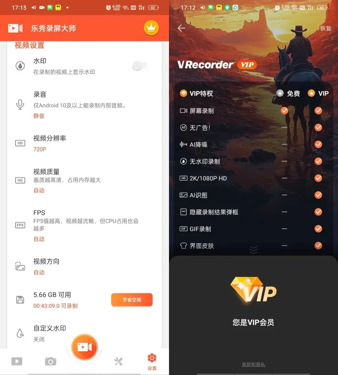 **简介:** 乐秀录屏大师(V Recorder)是一款功能全面的4K高清录屏与视频编辑工具。它支持录制屏幕、系统声音与麦克风解说,并提供剪辑、滤镜、转场、字幕、GIF制作、加水印等后期功能。其AI能力还可实现语音转字幕、会议纪要总结等。