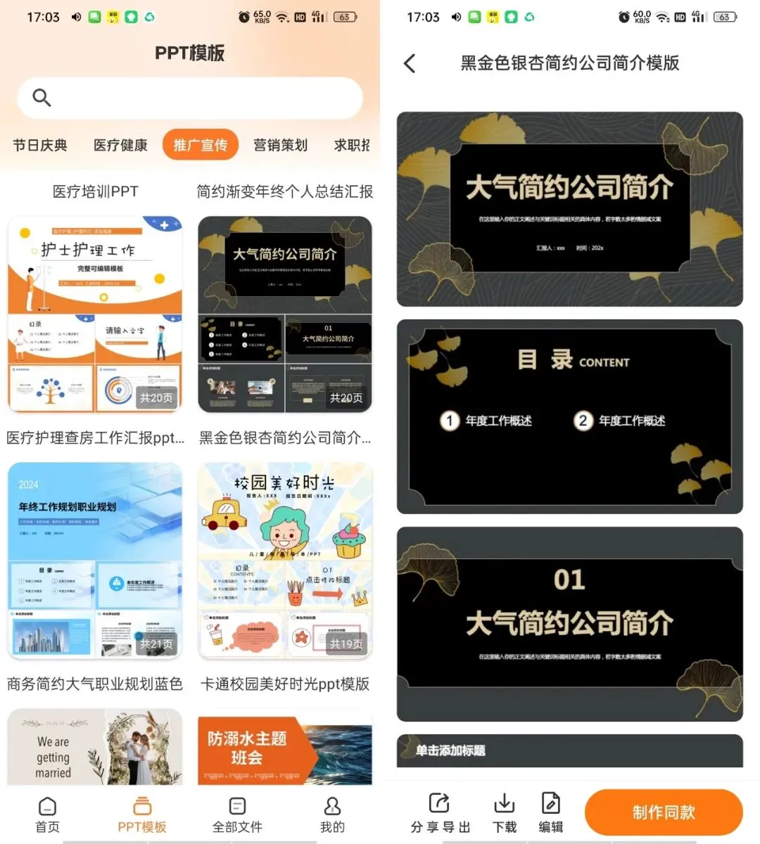 **简介:** PPT模板君是一款手机端PPT制作辅助工具。它提供海量涵盖工作总结、毕业答辩、求职应聘、商业计划等各类场景的幻灯片模板,用户可直接套用模板进行编辑,或从零开始生成演示文稿,兼容WPS、Office等主流格式。