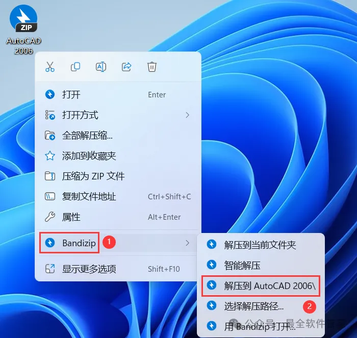 1、下载AutoCAD 2006软件安装包到电脑上,右键选择【解压到AutoCAD 2006\】