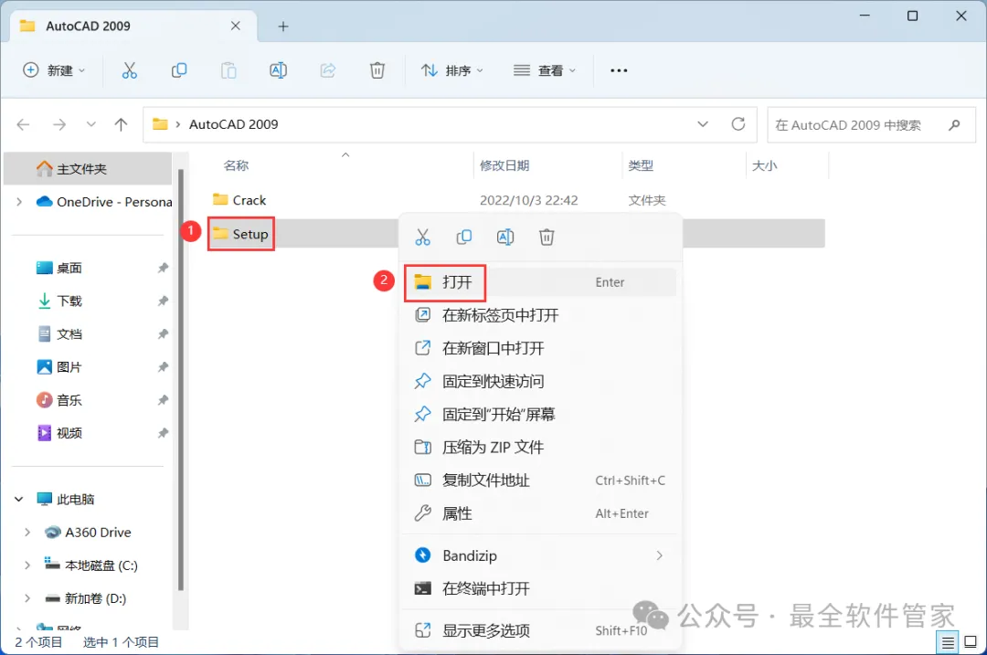 20、回到AutoCAD 2009文件夹,找到【Crack】文件夹,右键【打开】它