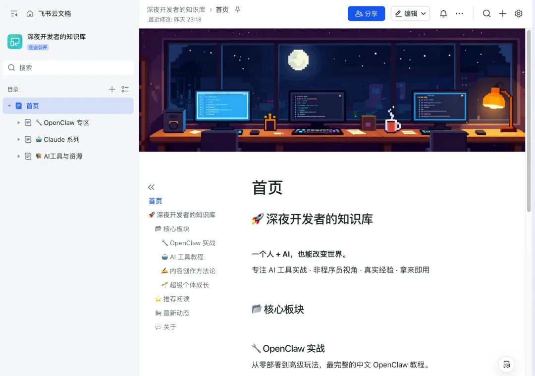 Openclaw接管了 飞书文档和知识库,它比我整理得还好
