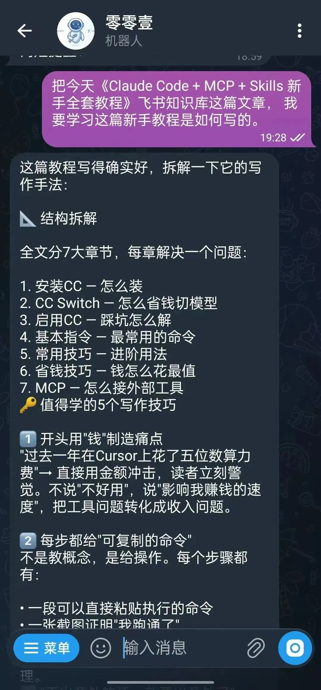 把今天《Claude Code + MCP + Skills 新手全套教程》飞书知识库这篇文章, 我要学习这篇新手教程是如何写的。