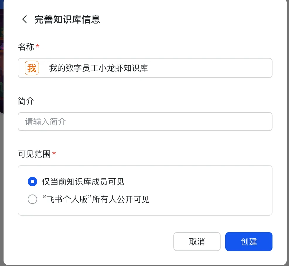 起个名字(比如”我的数字员工知识库”)