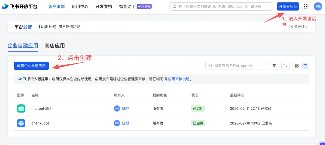 第2步:创建飞书应用(给数字员工配把”钥匙”)