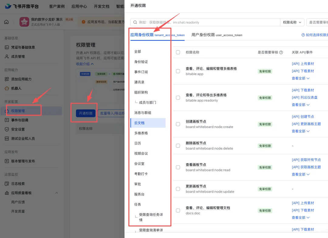第3步:给应用开通权限
