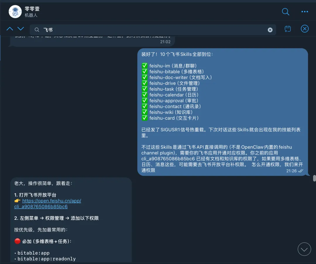 先说结论:它现在能直接操作我的飞书文档和知识库以及你能在飞书干的任何事比如日程会议待办审核等等。