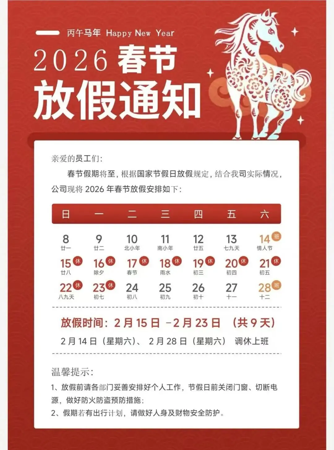 2026春节放假模板