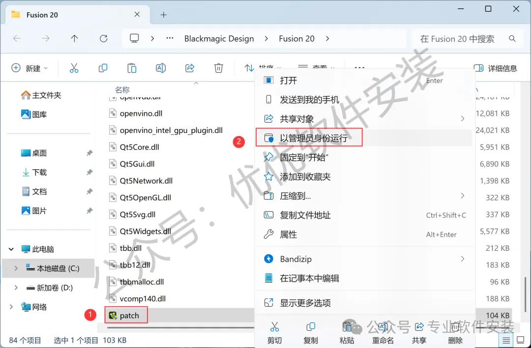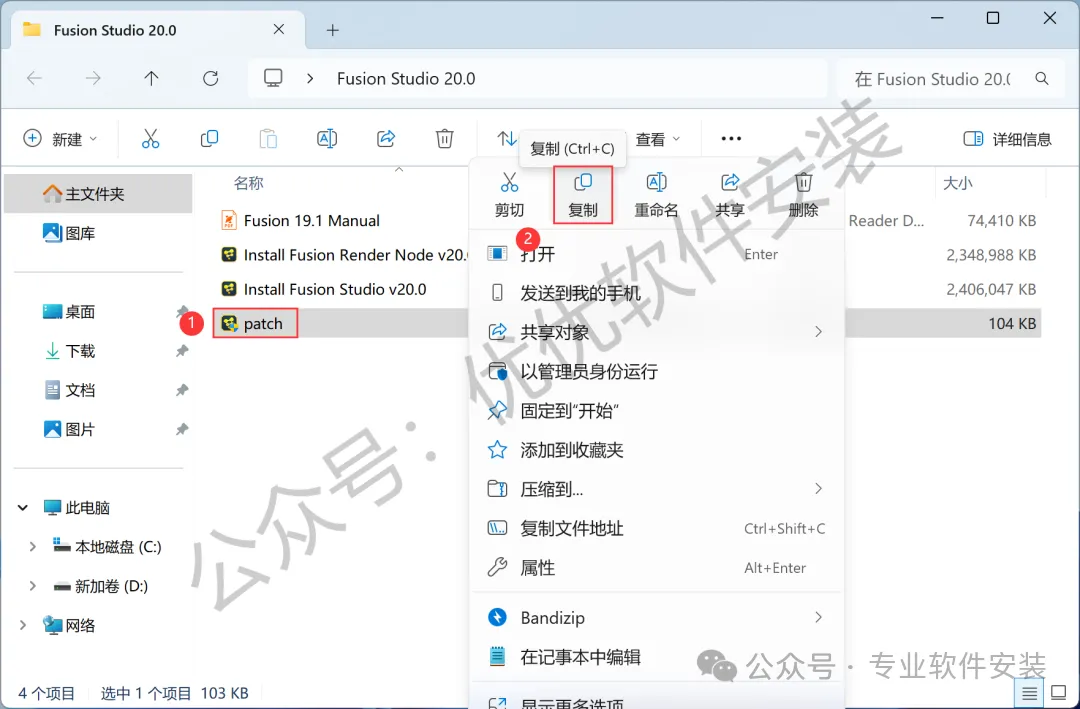 14、回到Fusion Studio 20.0文件夹,找到【patch】文件,再右键点击【复制按钮】