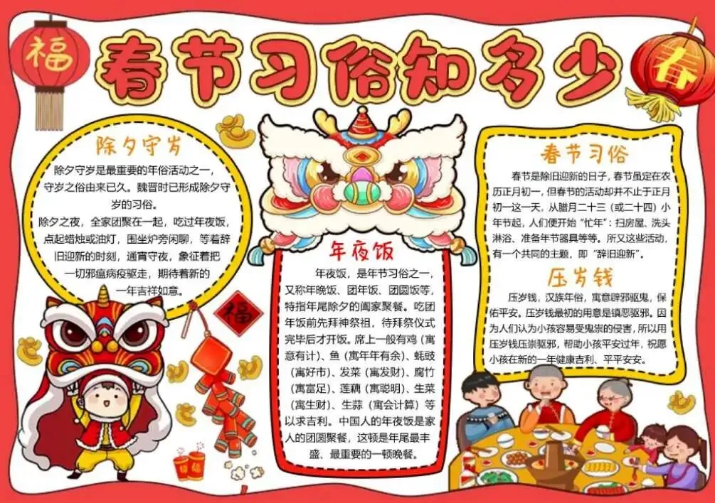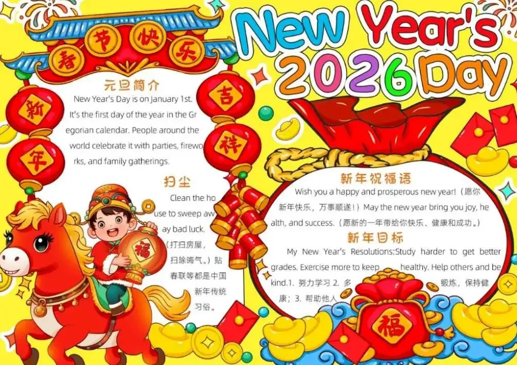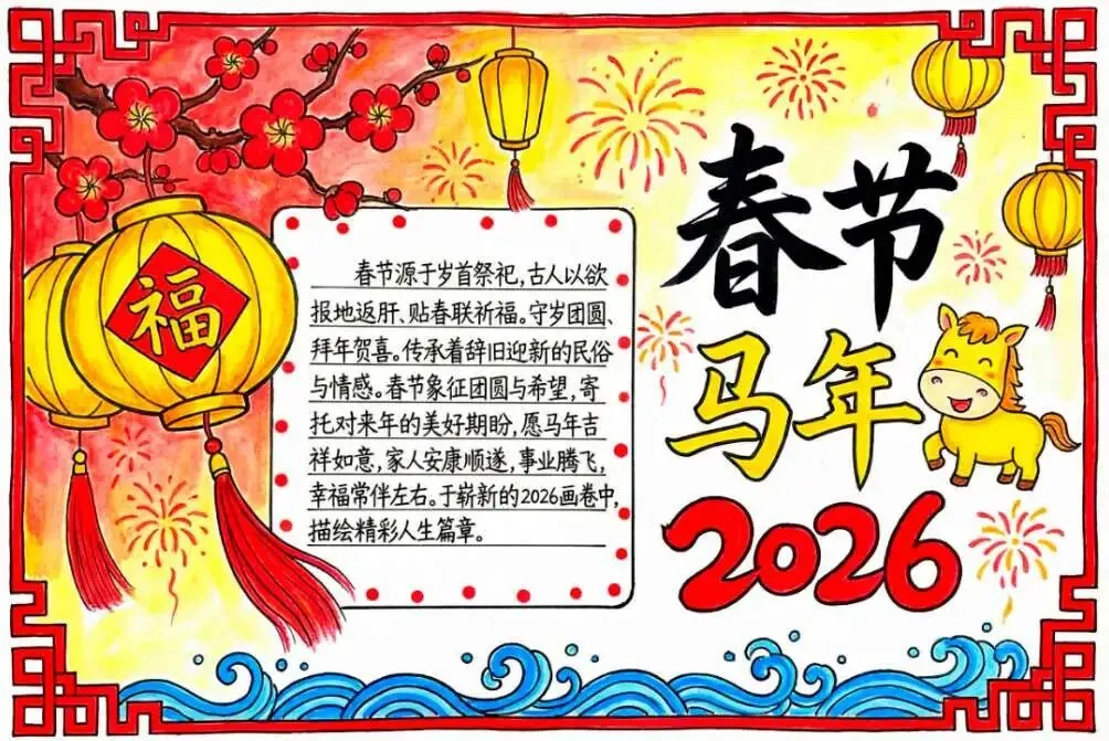 【免费下载打印】10套马年春节主题手抄报模板,中英文手绘!
