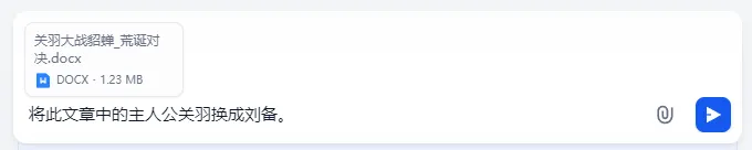 结果如下:不但把关羽改成了刘备,还对相关的设定(武器,坐骑,绝招等)做出了调整,非常的智能~