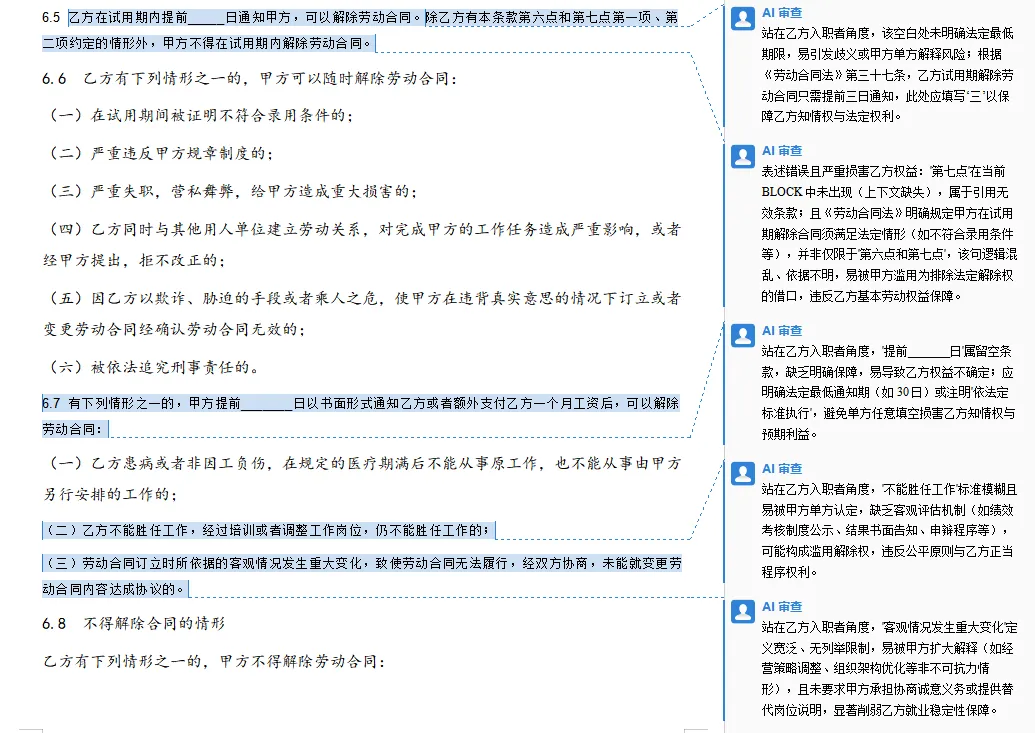 批注模式:AI会对删除,新增的内容进行标记,并且会通过批注气泡的方式进行说明,修改理由。