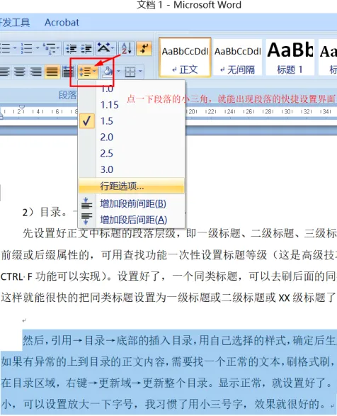 第一步先设置目录的标题等级。先设置好正文中标题的段落层级,即一级标题、二级标题、三级标题等,有前缀或后缀属性的,可用查找功能一次性设置标题等级(这是高级技巧,查找CTRL F功能可以实现)。设置好了,一个同类标题,可以去刷后面的同类标题,这样就能很快的把同类标题设置为一级标题或二级标题或XX级标题了。