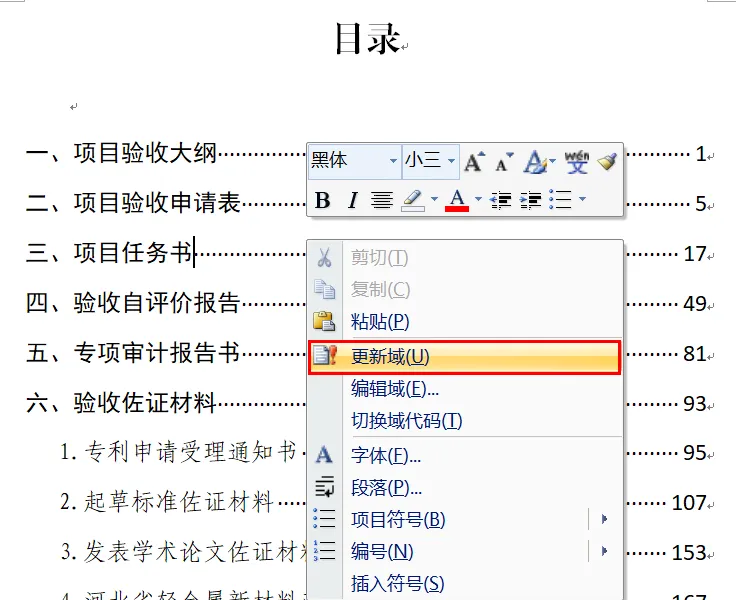 如果已经知道了要添加分隔页(分类佐证材料的清单),那这个功能就需要在word中完成了。同时把总目录也间接的设置出来。总目录一般按照大类设置,加上佐证材料的分类目录。