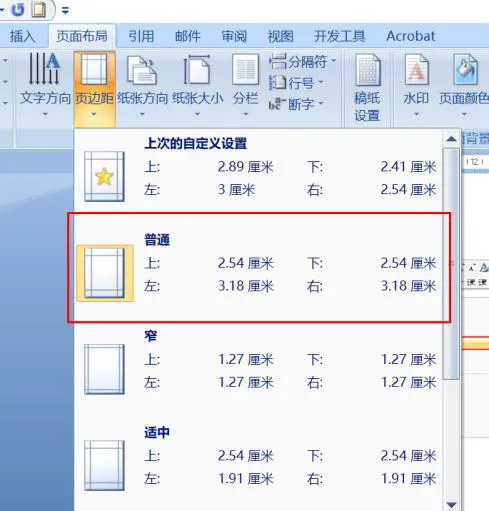 图6、页边距的设置