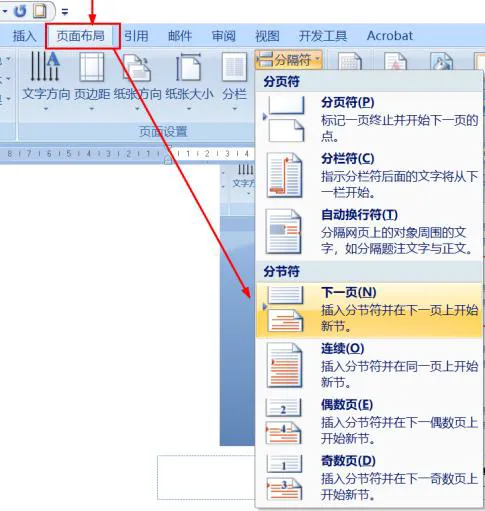 图7、分节符的设置
