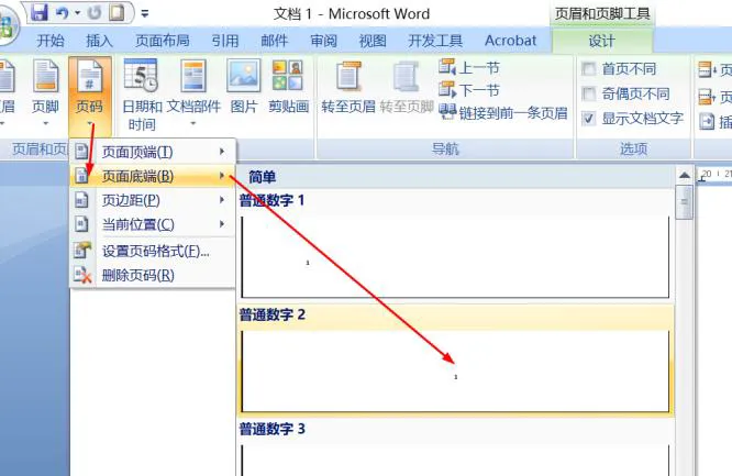 图10、分节设置之后,页码的设置(起始页码1)