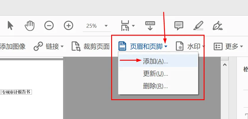 图17、pdf中添加页眉页脚的操作
