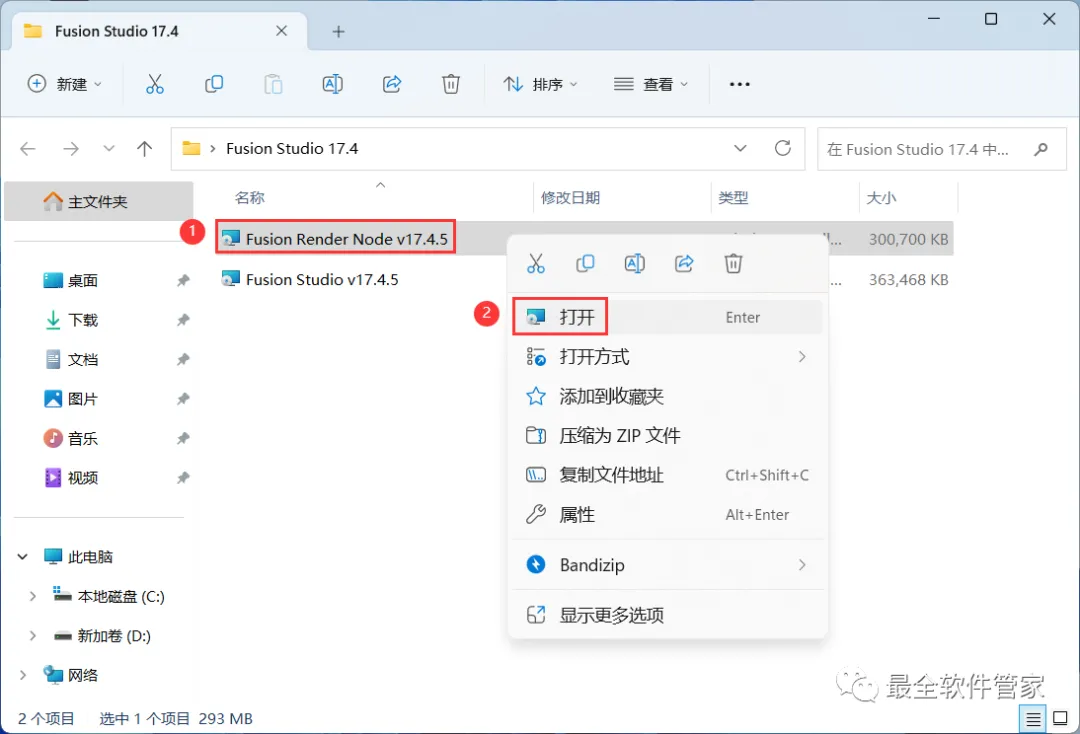 9、回到Fusion Studio 17.4文件夹,找到【Fusion Render Node v17.4】文件夹,右键【打开】它