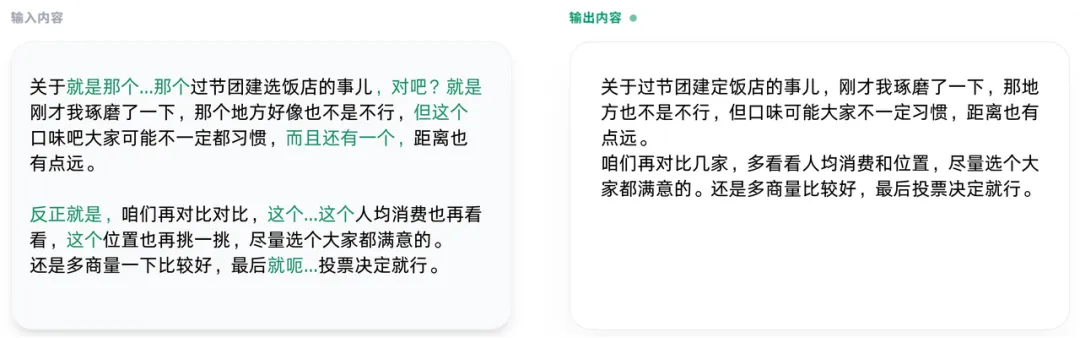 不仅去掉了废话,连语序和逻辑都帮你捋顺了。哪怕你语无伦次,它也能听懂你的核心意图。