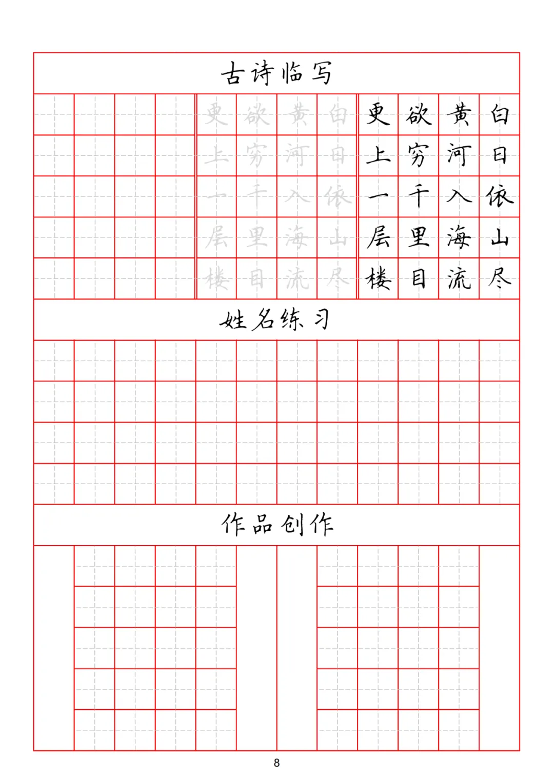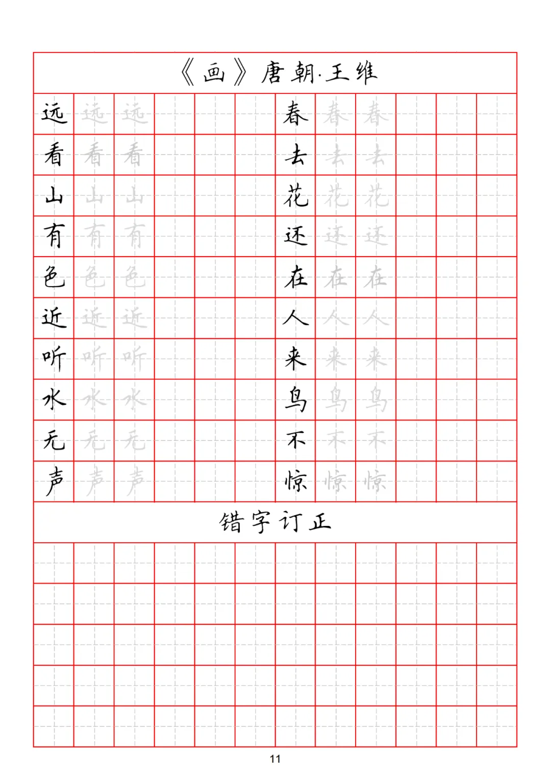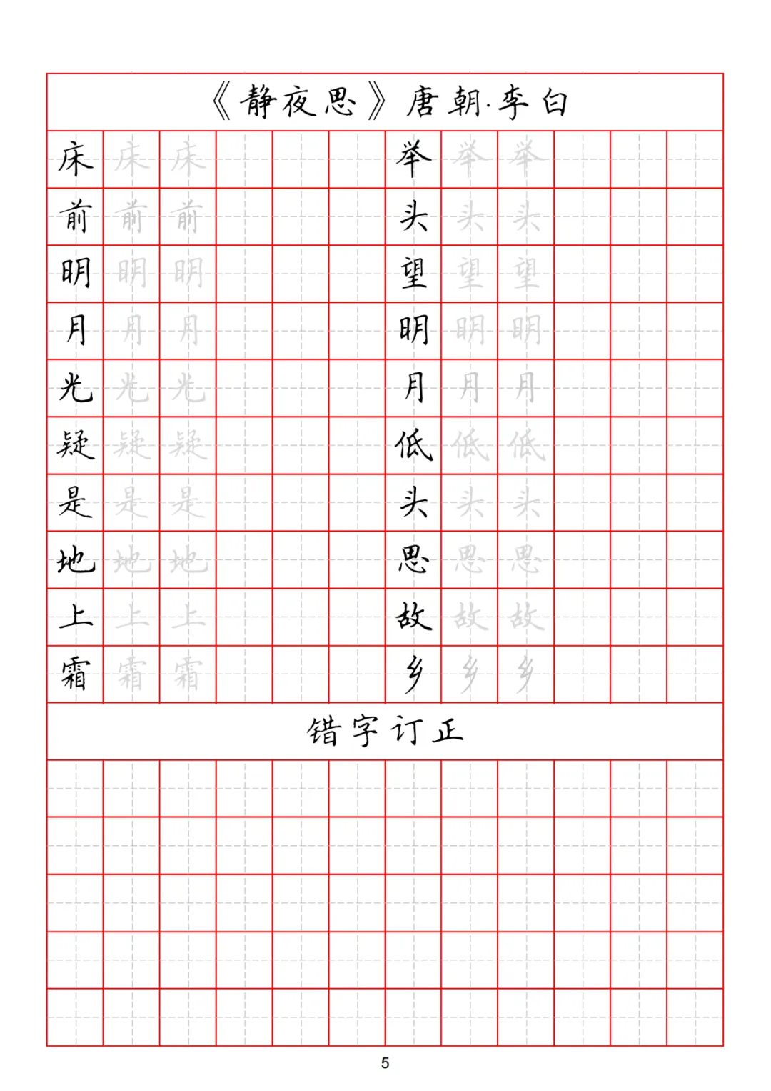古诗临摹一定要有针对性的学习,比如,可以集中一段时间学习五言古诗,让孩子们在学习中领略古诗的魅力,一举两得。这套五言古诗临写练习,用来当做课堂教材再合适不过了,也可以发给家长,当做打卡的作业。
