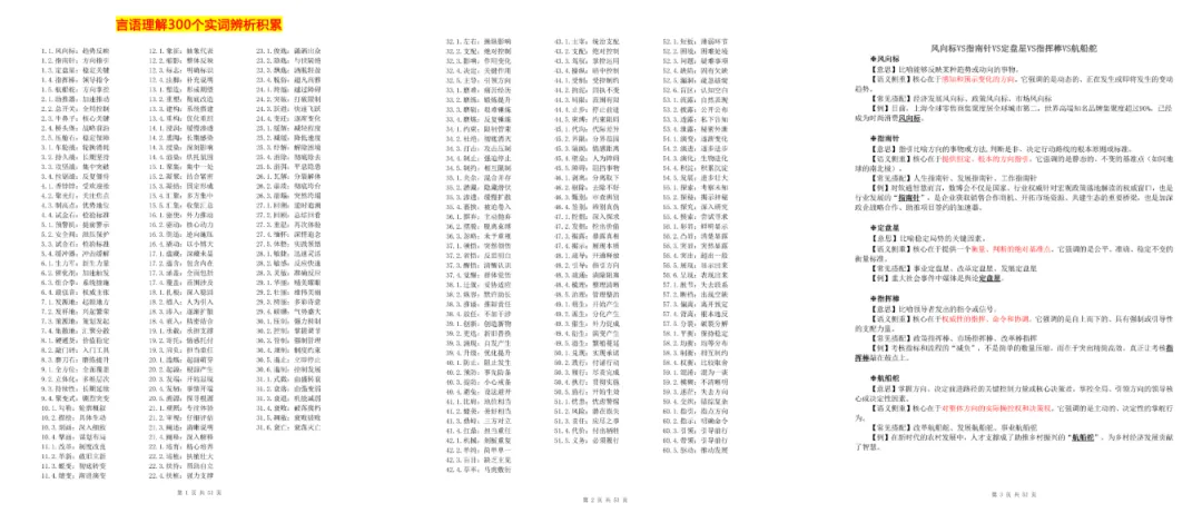 针对进几年的国省考的真题出题情况,今天给大家分享【言语理解300个实词辨析】,并附上了语义侧重、常见搭配及例句,共60组,52页。🥳