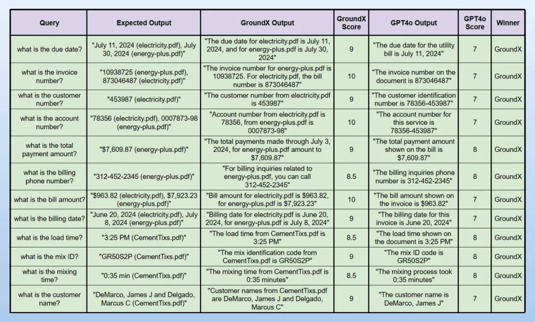 为了提供正确答案,GroundX需要解析并理解整个布局,包括表格,并理解所有信息如何相互关联。