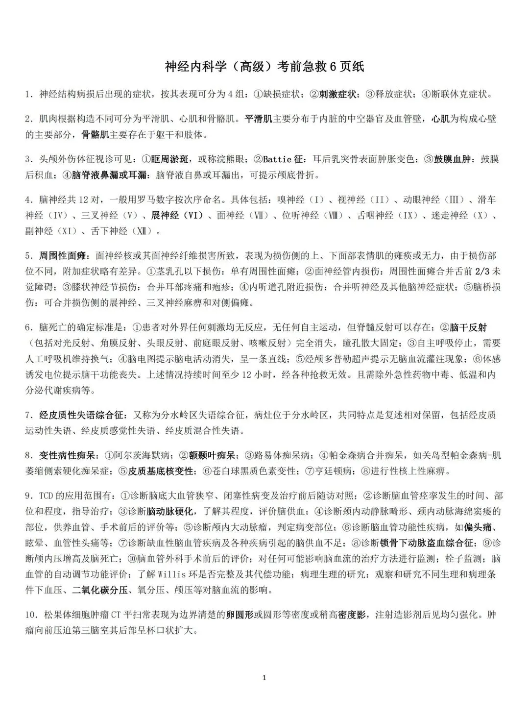 四、神经内科学高级职称005考点秘籍【考点秘籍—又称考前四页纸,讲知识点浓缩成几页纸,供各位考生在考前上考场时重点记忆背诵】