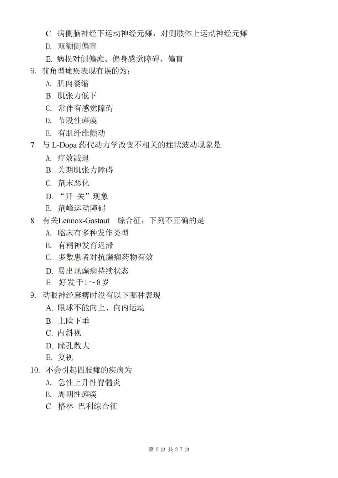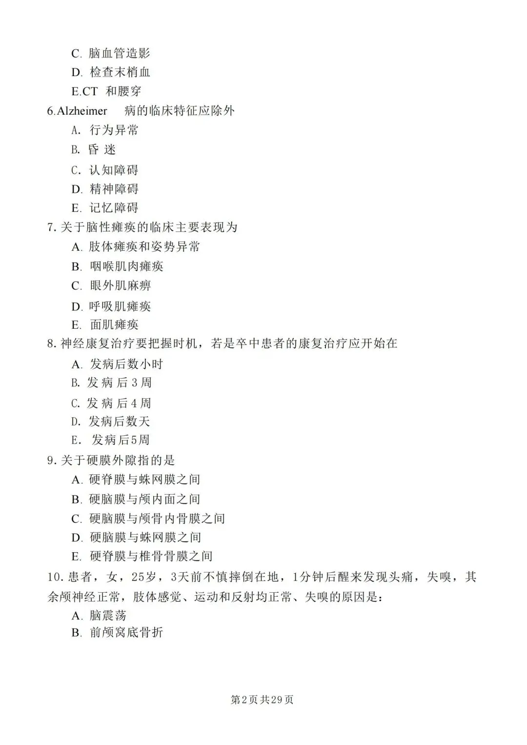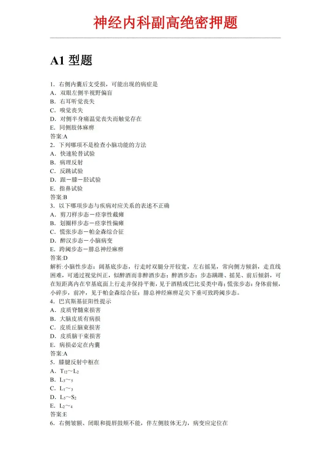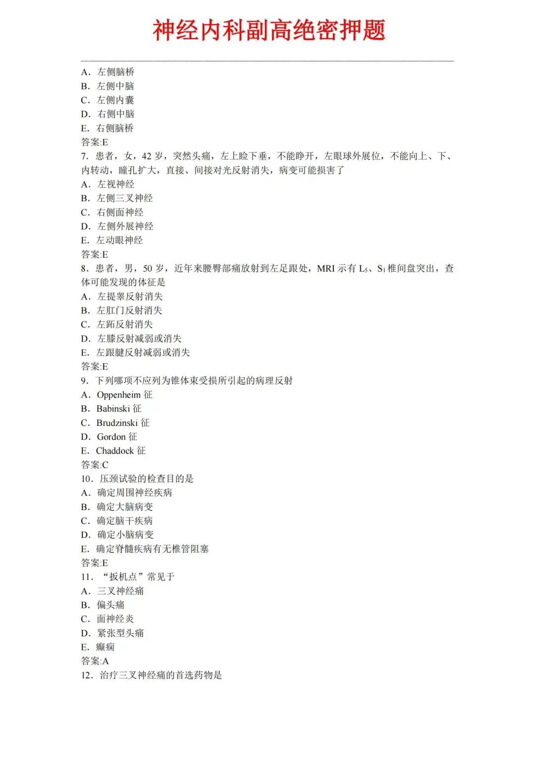 六、神经内科学高级职称005模拟半套卷【模拟半套卷—讲考试题型细化,整理成模拟卷,供广大考试模拟。】