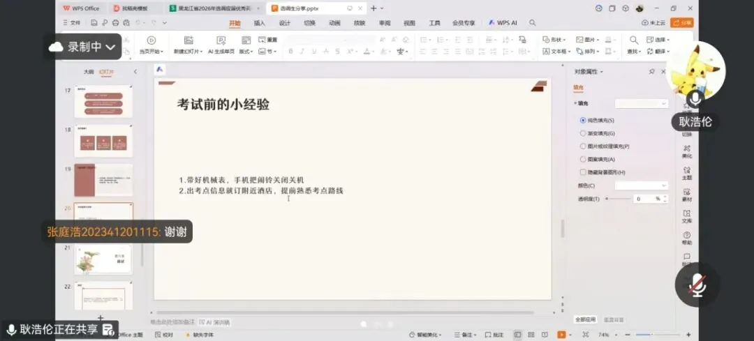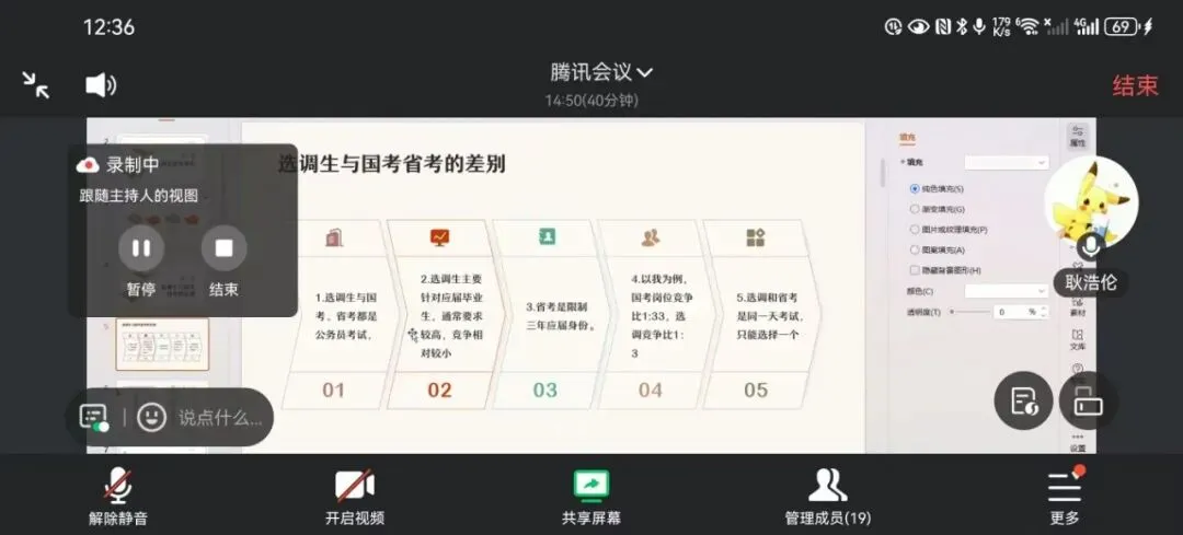 耿浩伦围绕备考全流程,系统梳理了申论技巧、实用软件、考前准备、考察环节及体检须知。他强调“得申论者得公考”,并分享了申论作答的要点与思路,为同学们提供清晰备考路径。谈及选调生与国考、省考的差异,他结合自身经历,分析招录对象、竞争比例等区别,帮助同学们理解选调生项目的定位。他还分享考试的注意事项,细节满满,干货十足。