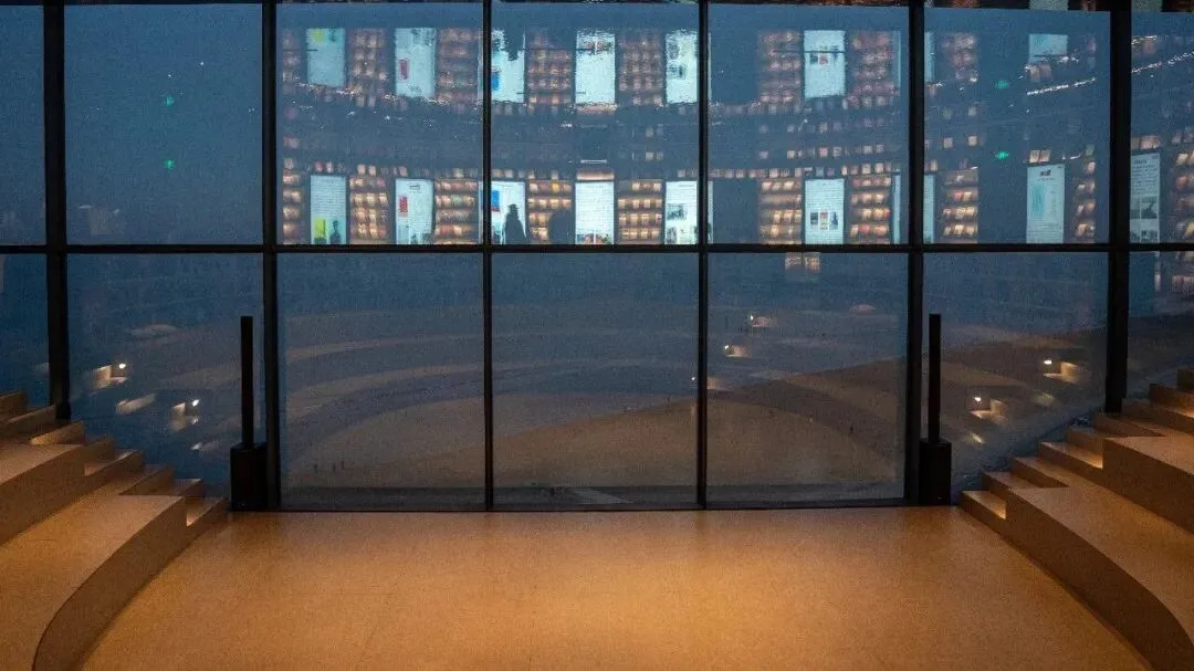 空中图书馆坐落于黄渤海新区时光塔7楼,是烟台极具诗意的“海景书店”。