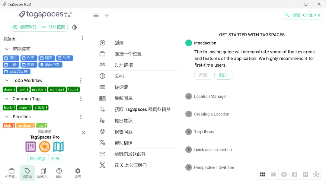 兄弟们,你们是否经历过这样的抓狂时刻?电脑桌面堆满十几个项目的技术文档,想找三周前的会议纪要却要在20多个PDF里大海捞针;浏览器收藏夹里躺着300+网页,真正需要用的时候死活翻不到关键资料。那么,今天给大家推荐一款文件标签管理工具 TagSpaces,它专为高效组织和检索本地文件而设计。它通过标签系统让用户可以轻松为文件添加多个自定义标签,从而快速分类和搜索文件。TagSpaces 支持多种操作系统,包括 Windows、Linux、macOS 和 Android,并提供浏览器扩展,方便用户将在线内容保存为本地文件。它还支持 Markdown 和 HTML 格式的笔记记录,以及待办事项管理功能,帮助用户更好地整理知识和任务。
