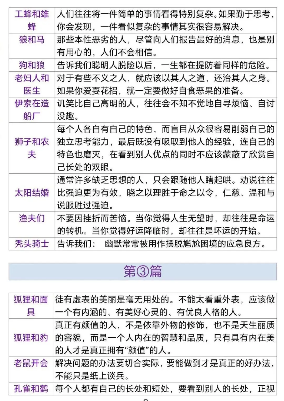 三年级(下)语文 伊索寓言道理