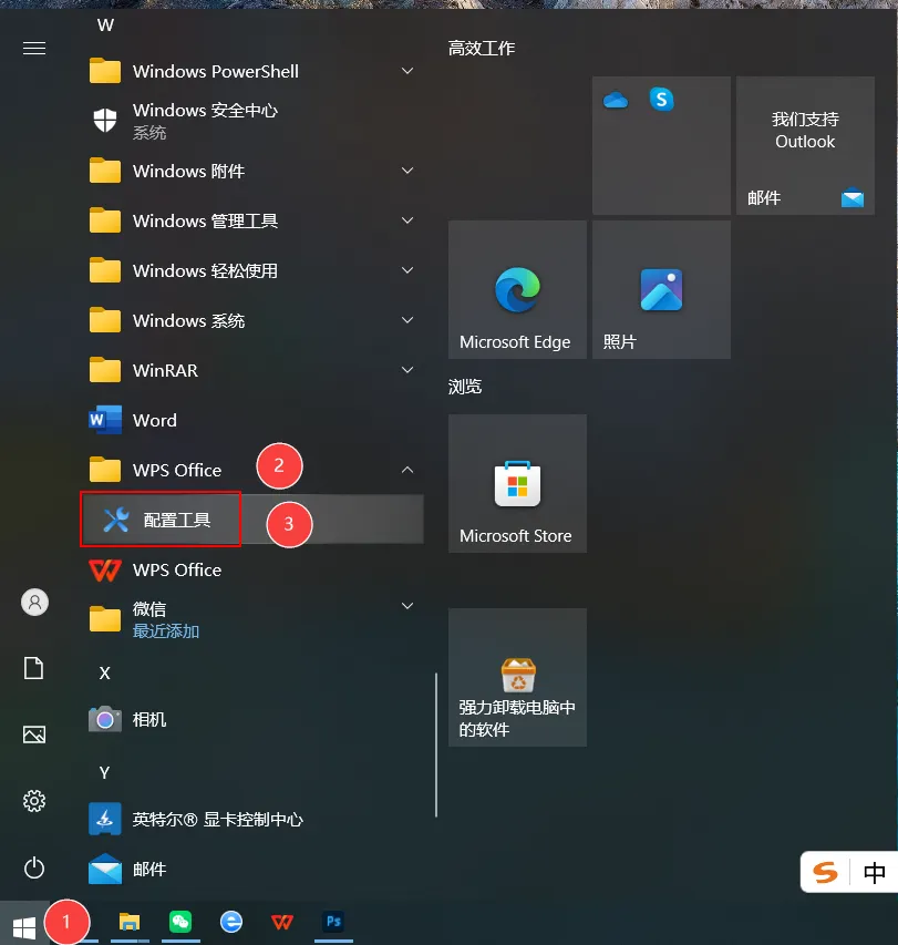 (1)点击开始菜单-WPS Office-配置工具