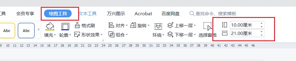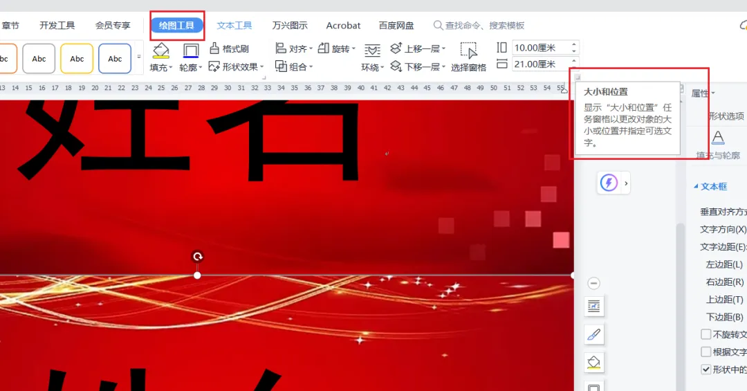 宽21cm,高10cm,设置文本框大小