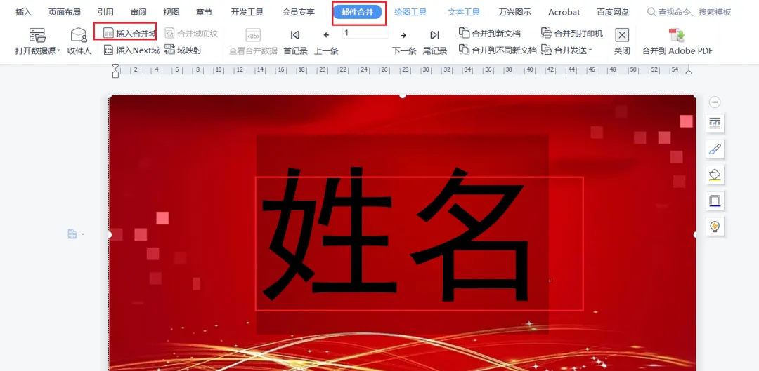 同理,下面的姓名也插入合并域