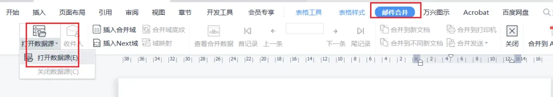 打开邮件合并功能