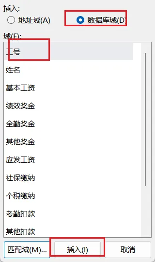 然后插入合并域