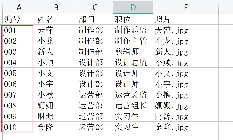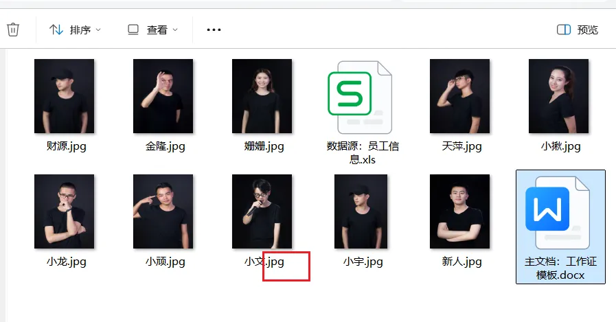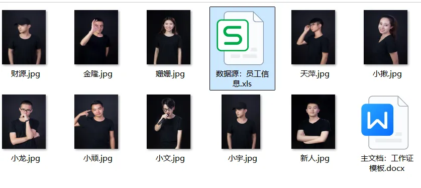 员工照片文件,确认后缀名都是jpg,并统一照片的尺寸大小,并等同于工作中照片框的尺寸大小。