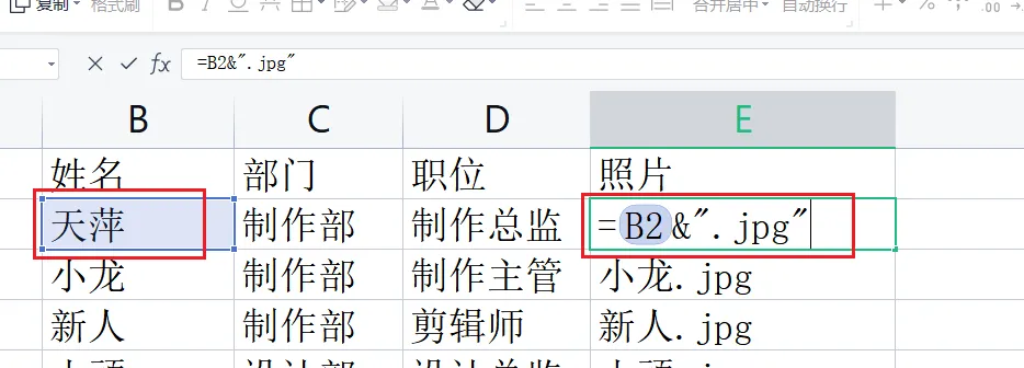 照片是通过B列进行拼接的,并与存放的实际照片文件名相同